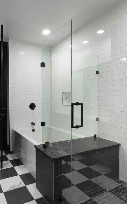 L a r g e b a t h r o om s in c l ud e s h o w e r s w i t h ma r b l e a n d m o s ai c t i l e