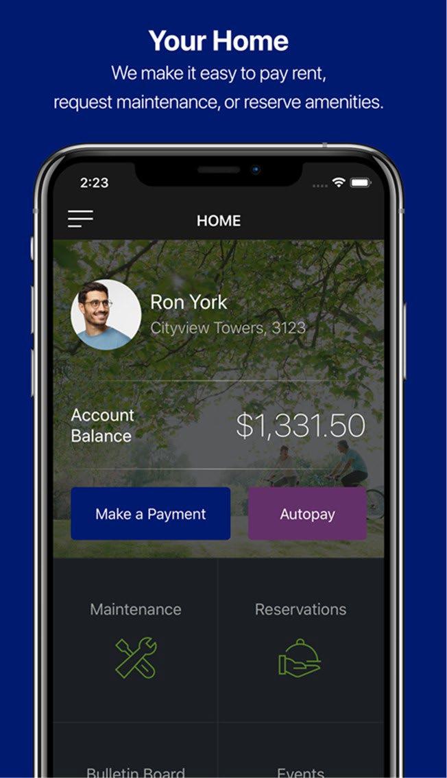 On the home screen, select the purple button that says Autopay and set your account to pay rent every month automatically.