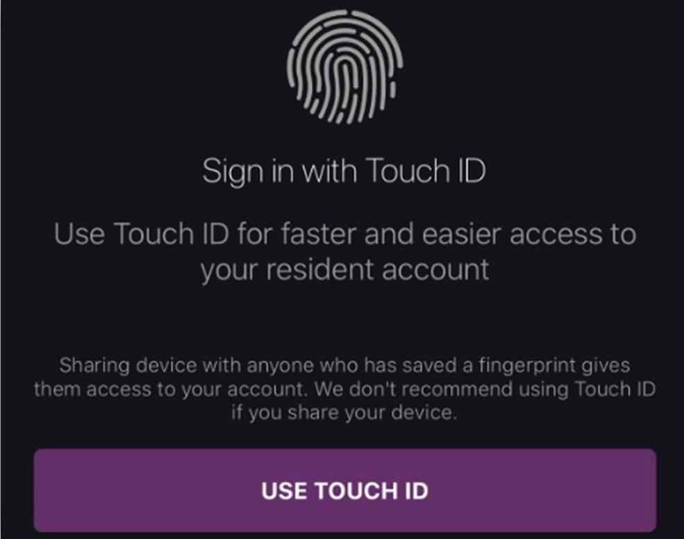 Easy accessibility and logins with Touch ID and Face ID integration with the Gables Resident App.