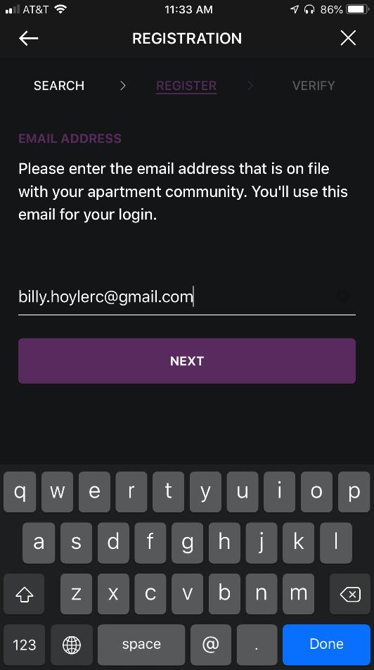 Step 4. Enter the email address that you used to sign your lease, click Next. You’re almost done!