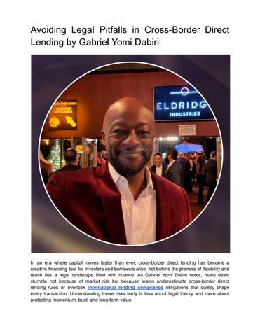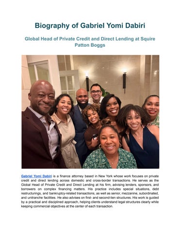 Gabriel Yomi Dabiri is a finance attorney based in New York who advises clients on a broad range of complex financing matters in domestic and cross-border settings. He serves as the Global Head of Private Credit and Direct Lending at his firm, where he works closely with lenders, sponsors, and corporate borrowers. His practice covers special situations, debt restructurings, and bankruptcy-related transactions, with regular involvement in senior, mezzanine, subordinated, and unitranche facilities. He also advises on first- and second-lien structures. His approach is grounded in careful analysis and practical execution, with a focus on helping clients reach workable outcomes that align with their commercial priorities. Gabriel has built significant experience across many segments of private credit and direct lending, including cash flow lending, asset-based lending, subscription lines, distressed debt, debtor-in-possession financing, and real estate finance structures. His background includes extensive work on buy-and-hold private credit strategies and on broadly syndicated finance transactions. This combination allows him to support both routine financings and highly structured matters. He regularly negotiates intercreditor and subordination arrangements and advises on sensitive restructuring situations. His work reflects a balanced perspective that considers legal requirements alongside market conditions, enabling clients to move forward with a clear understanding of risks and obligations. Gabriel Yomi Dabiri brings a global outlook to his practice through dual qualification and long-term international experience. He is admitted to practice law in New York and in England and Wales, and he has lived and worked across major financial centers in North America, Europe, and Asia. He divides his professional time among these regions, which has shaped his understanding of cross-border finance and multi-jurisdictional transactions.