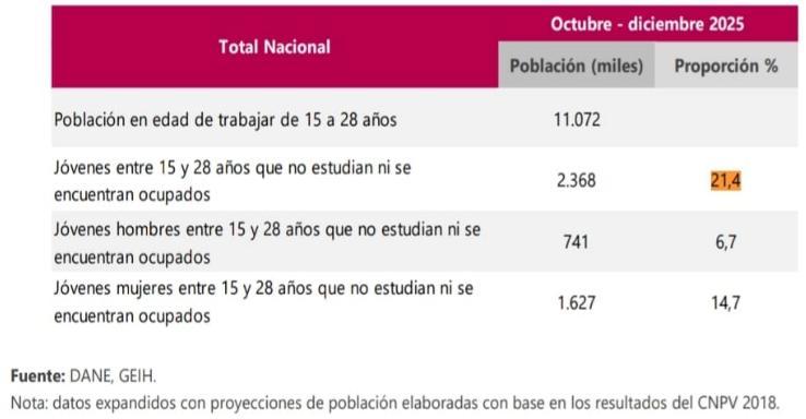 Departamento Administrativo Nacional de Estadística (DANE).(2024).Mercadolaboraldela juventud. Trimestre octubre–diciembre 2024.
