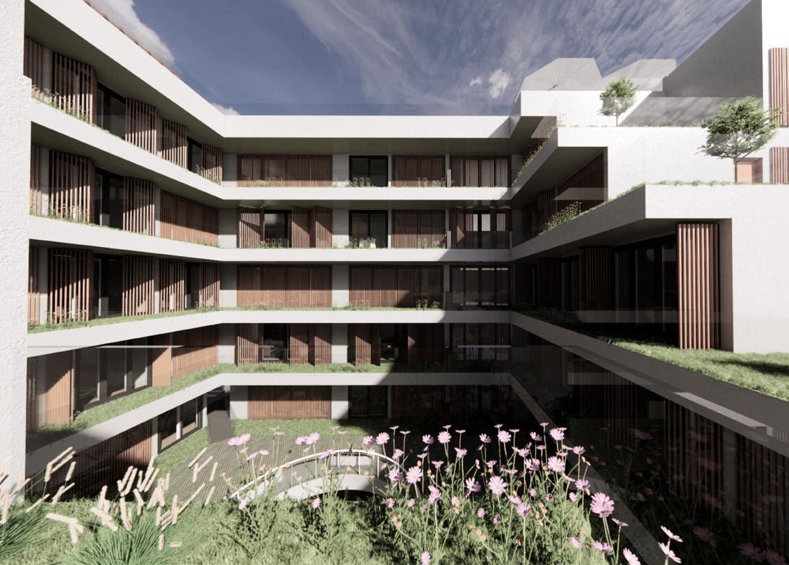 Espacio colectivo en planta baja y jardines en tipologías permitiendo la conexión con la ciudad y comunidad de la zona.