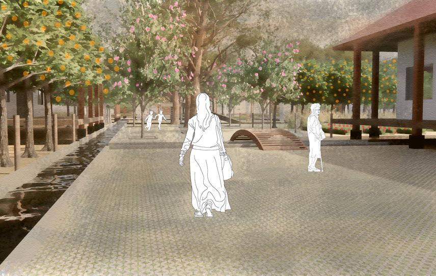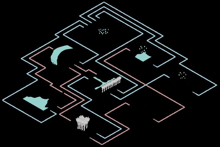 La Propuesta se sintetizó en dos isométricos donde se representa el funcionamiento del agua a una escala habitacional y local, mediante las acequias, cultivos y su comportamiento con el subsuelo. Buscando que el cuidado y manejo del agua sea prioridad en la unidad habitacional y ser la base y referencia para futuras generaciones.