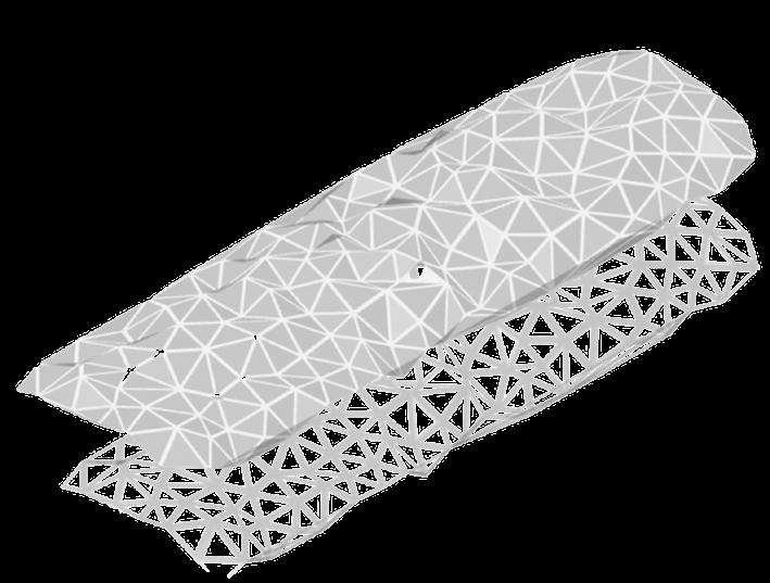 Como parte del concepto, la forma y estructura de la envolvente buscan representar lo natural a pesar de ser algo artificial, es por esto que se utilizaron dos efectos presentes en la naturaleza.