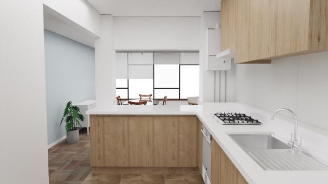 Diseño y remodelación de cocinas. Proceso que abarca la planificación espacial, optimizando flujos de trabajo y maximizando el aprovechamiento del espacio. Incluye asesoría en selección de materiales, equipamiento y soluciones de almacenamiento.