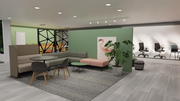 Diseño gráfico y modelado 3D para oficinas y espacios comerciales.