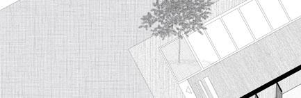 The west side, the side facing the park, will see a different conformation compared to the interior of the courtyard and the other perimeter sides, since here we again find the glass basement, a shaft defined by square windows (3.30 x 3.30 m) and a loggia made of laths as the crowning feature.