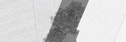 The optical cone between the school and the park is projected onto the ground until it meets the inverted T-shaped avenue.