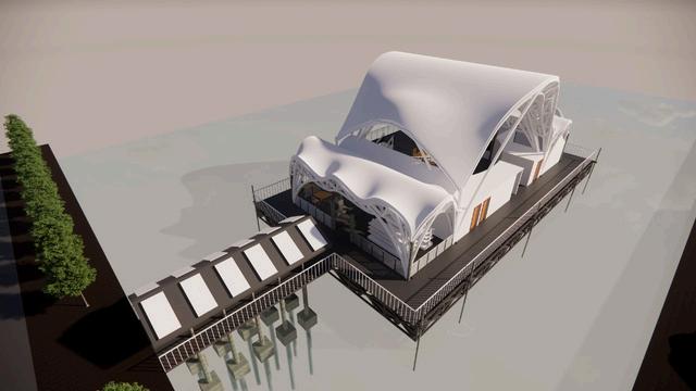pada desain bangunan ini mendesain bangunan apung pada tugas PSSB 5 dengan tapak di semarang dengan membuat atap menggunakan rhino dan grasshoper dengan material bamboo dan rangka atap space frame dobel layer dan penutup atap anyaman bamboo