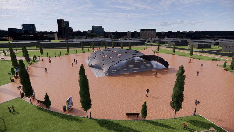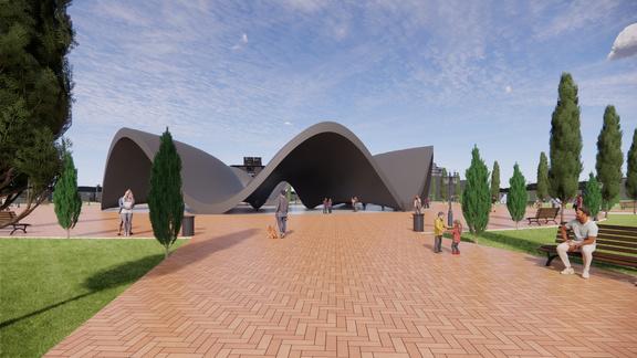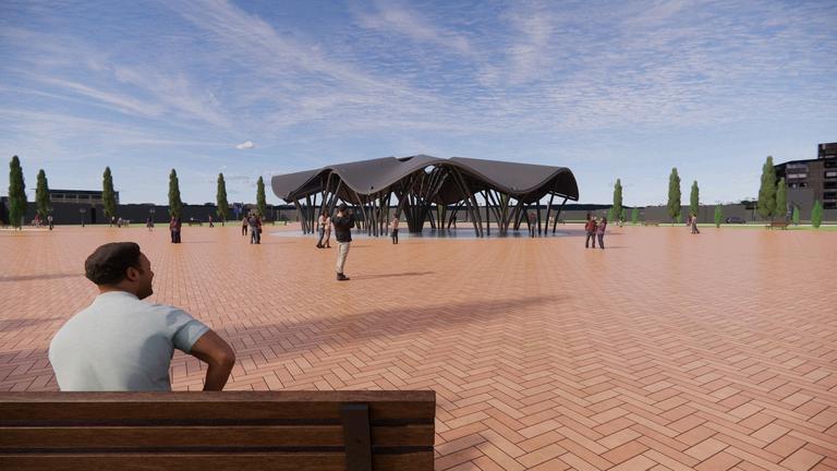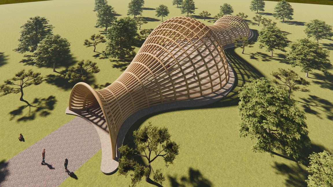 pada tugas ini membuat banguunan pavelium semi terbuka dengan menggunakan struktur waffel agar tidak menggunakan kolom di bangunan bentang lebar