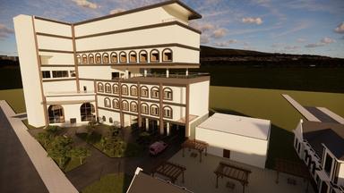 Pada tugas ini mendesain gedung rumah sakit agar mudah di akses pada zona zona yang dekat dengan bangunan dan membuat fasad dengan kotak kotak kang di susun seperti bata dan