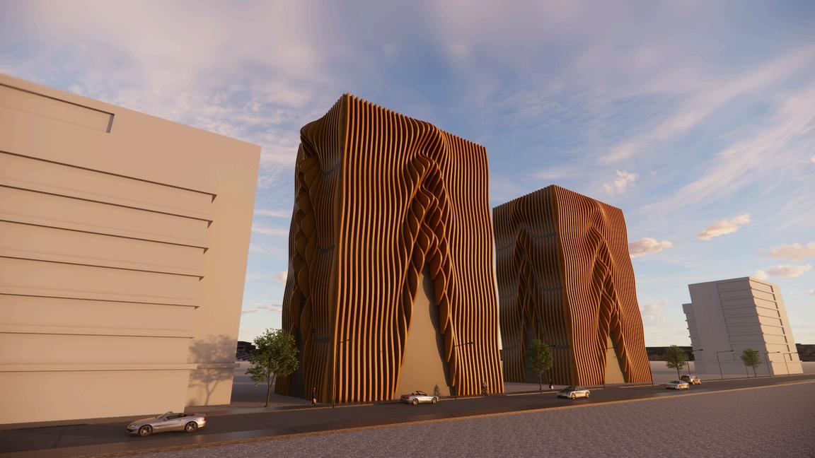 Pada Tugas Proyek ini membuat desain fasad bangunan 12 lantai. dengan desain fasad yang mengambil dari link 3 dengan menggunakan software rhino dan grasshoper dengan menggunakan desain fasad material kayu agar terlihat natural