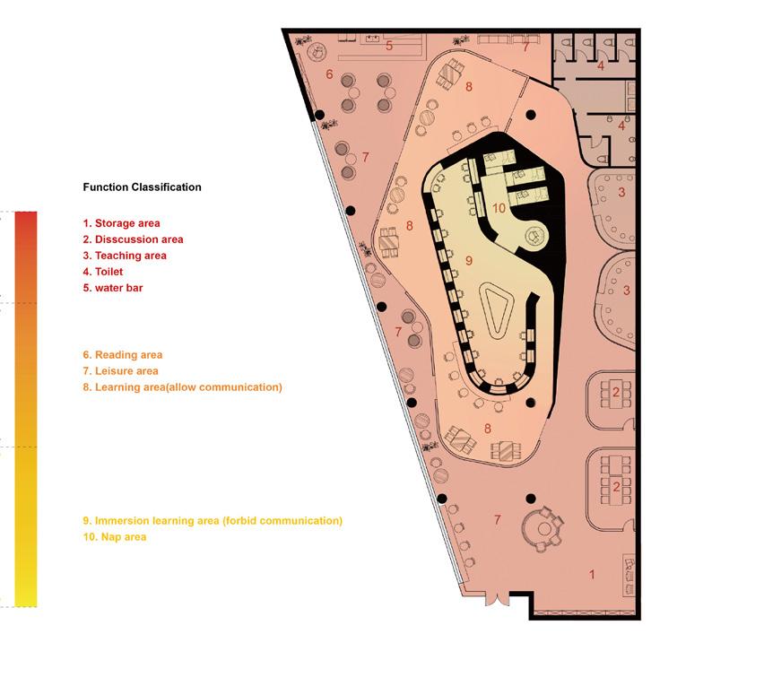 There are cubicle self-study rooms that meet the requirements of students in many scenes of Korean dramas and Japanese dramas. However, the traditional industry is difficult to meet the needs of the people, and people's demand for learning facilities is increasing, so the cubicle model will eventually be eliminated. In my opinion, the Shared selfstudy room needs to meet people's spiritual needs in more aspects. This project takes the Shared self-study room as the carrier to study the relationship between human behavior and space boundary, and then discusses how to design a dedicated learning space.