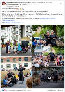 Sociale medier var et vigtigt redskab, som vi har benyttet så vidt som muligt. Under festivalerne var vi aktive og synlige på Facebook og Instagram og dokumenterede festivalerne via opslag og historier om kunstnerne, forestillingerne og publikum. Det samme gjorde vores samarbejdspartnere og publikum ved at synkronisere med festivalernes kanaler gennem tags og links.