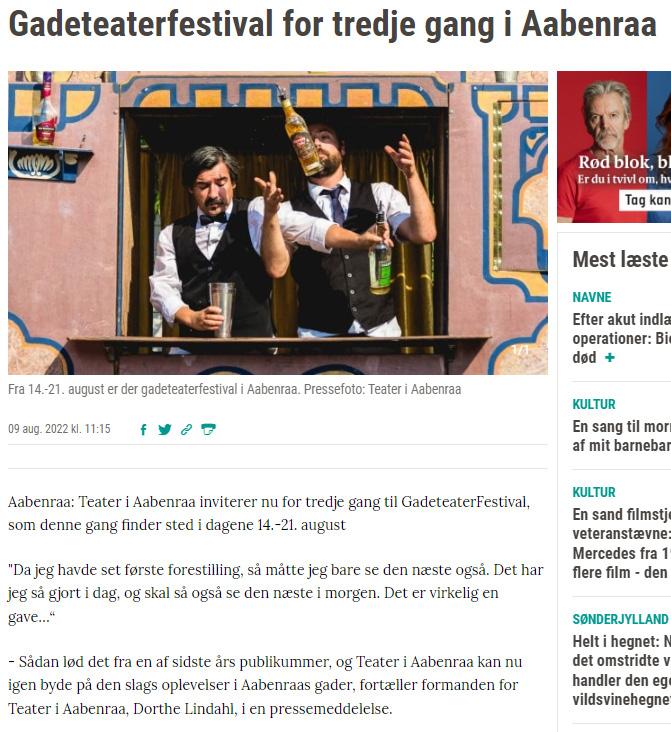 20. JydskeVestkysten, 9. august 2022 (lokal, Sønderjylland), Foromtale