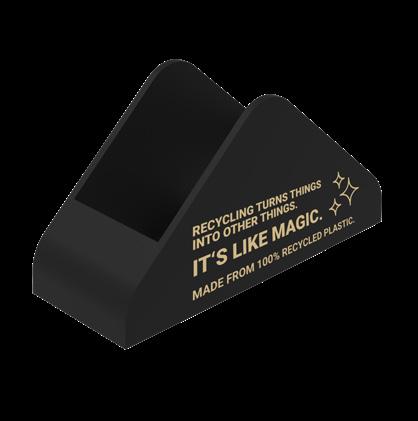Die Recycling-Serie überzeugt mit hochwertigen Materialien und das alles „Made in Germany“. Dabei bieten die edlen Produkte Platz für individuelle Botschaften und sind leicht zu reinigen und besonders stabil.