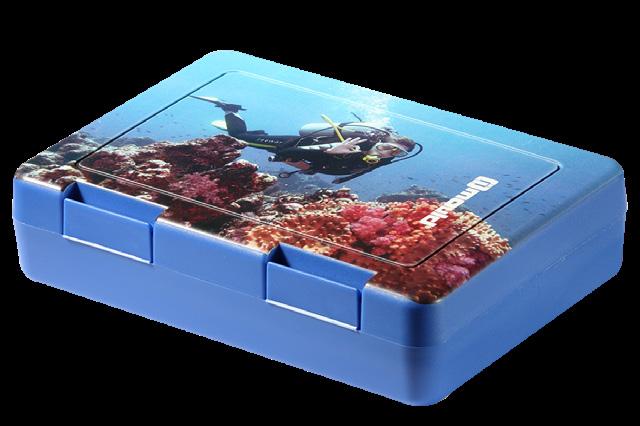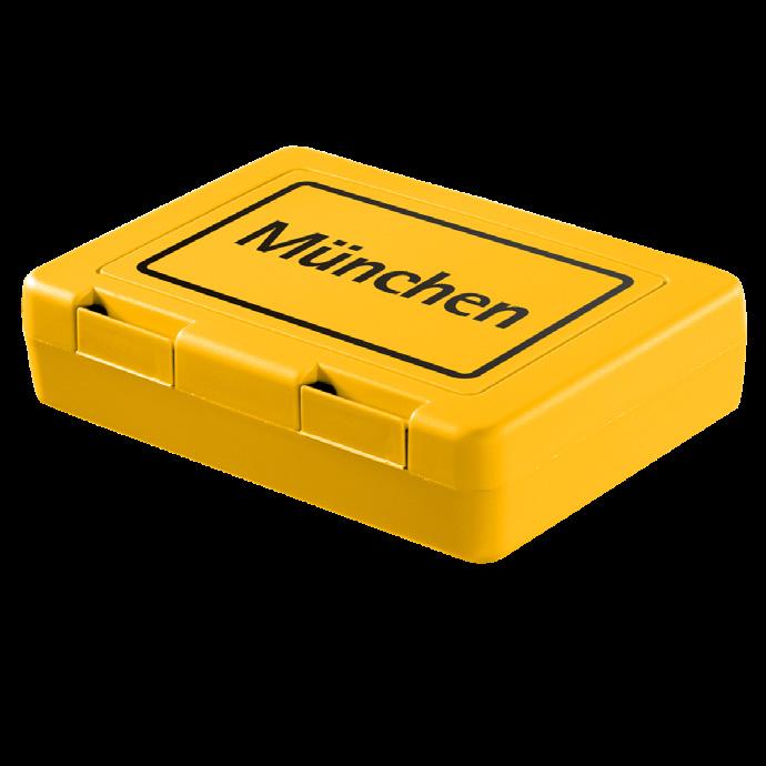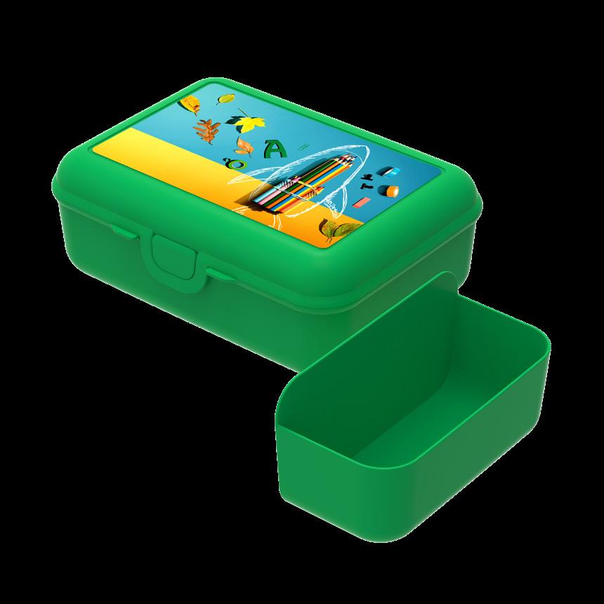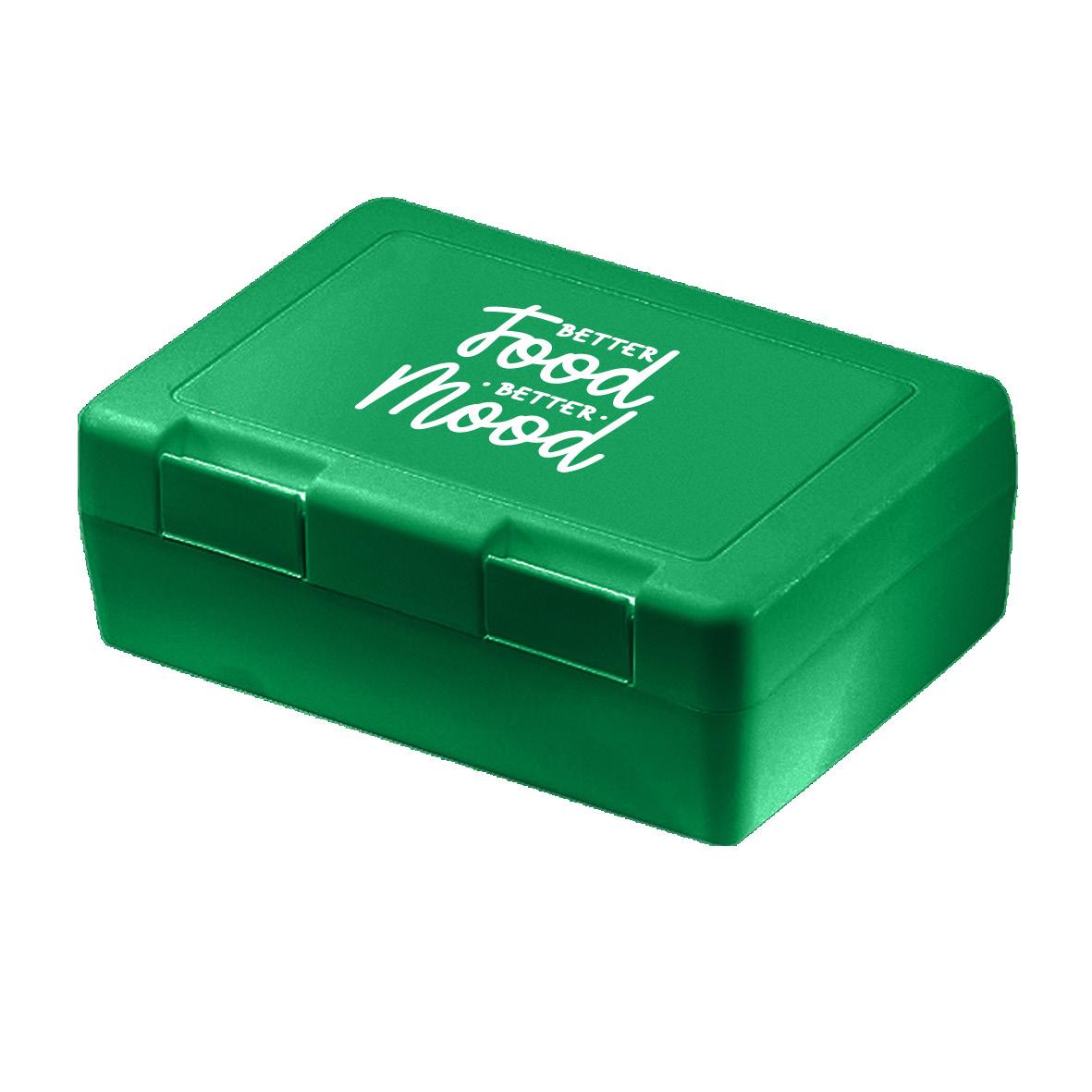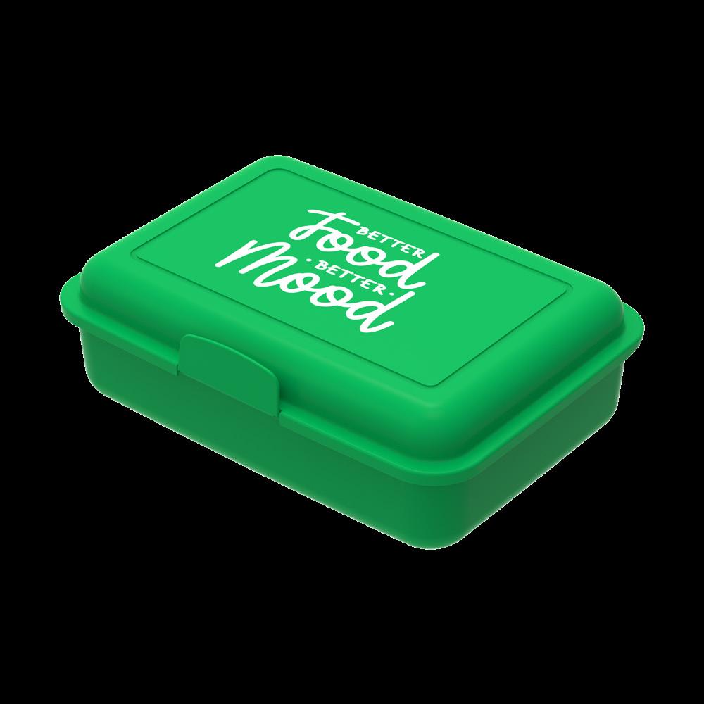 Die ideale Box für das Pausenbrot – mit Klickverschluss sicher verschließbar. In vielen Farben erhältlich und optimal für die Veredelung per IMould-Verfahren geeignet.