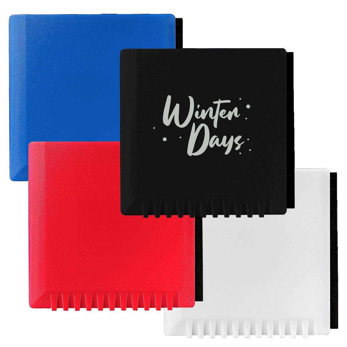 Befreien die Scheiben im Handumdrehen vom Eis. Stabile und handliche Eiskratzer in verschiedenen Ausführungen und mit großer Werbefläche.