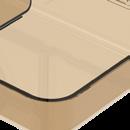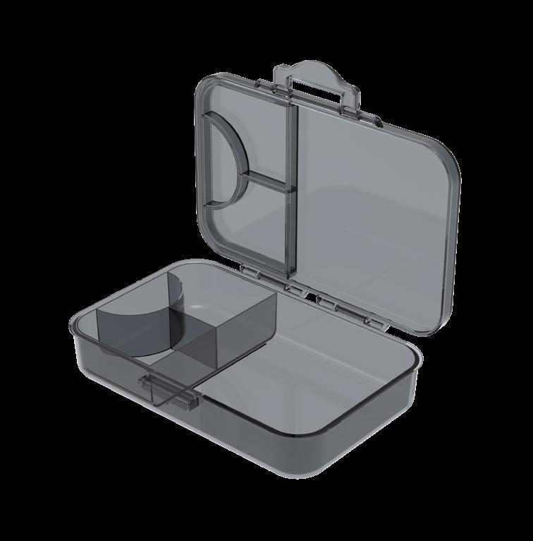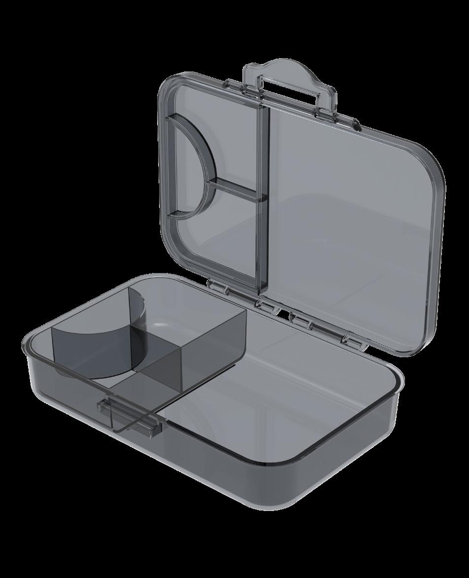 Die luxuriöse Box. Sehr geräumige Vorratsdose aus PP mit Klickverschluss und herausnehmbarer Schale, die unterschiedliche Lebensmittel bei der Aufbewahrung und dem Transport voneinander getrennt hält. Die Box ist lebensmittelecht und garantiert BPA-frei. Die Oberseite ist perfekt für eine Veredelung per IMould-Verfahren geeignet.