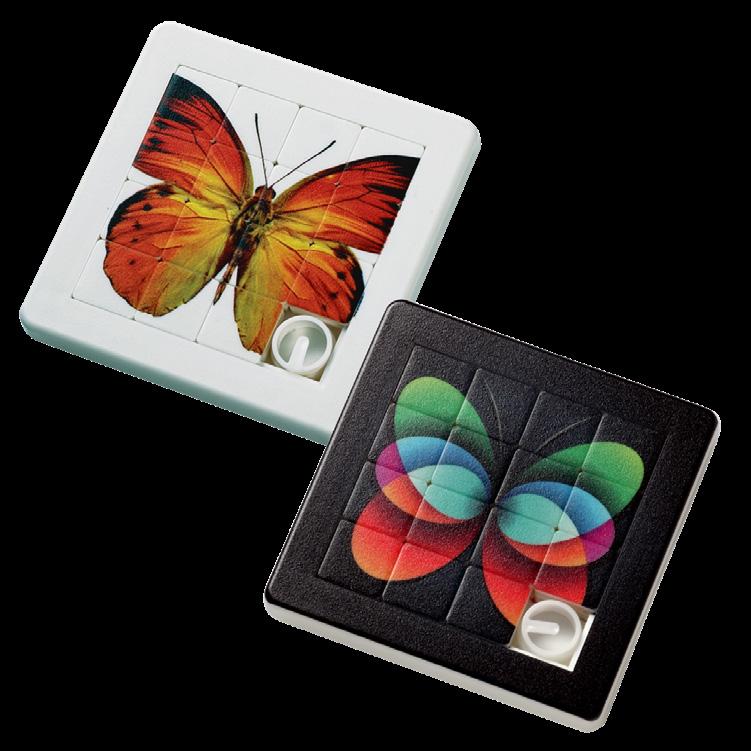 Kniffliges Schiebespiel mit 15 beweglichen Teilen und 1 Stopper. Individuell mit bis zu 4 Farben bedruckbar. Große und wirkungsvolle Werbefläche.
