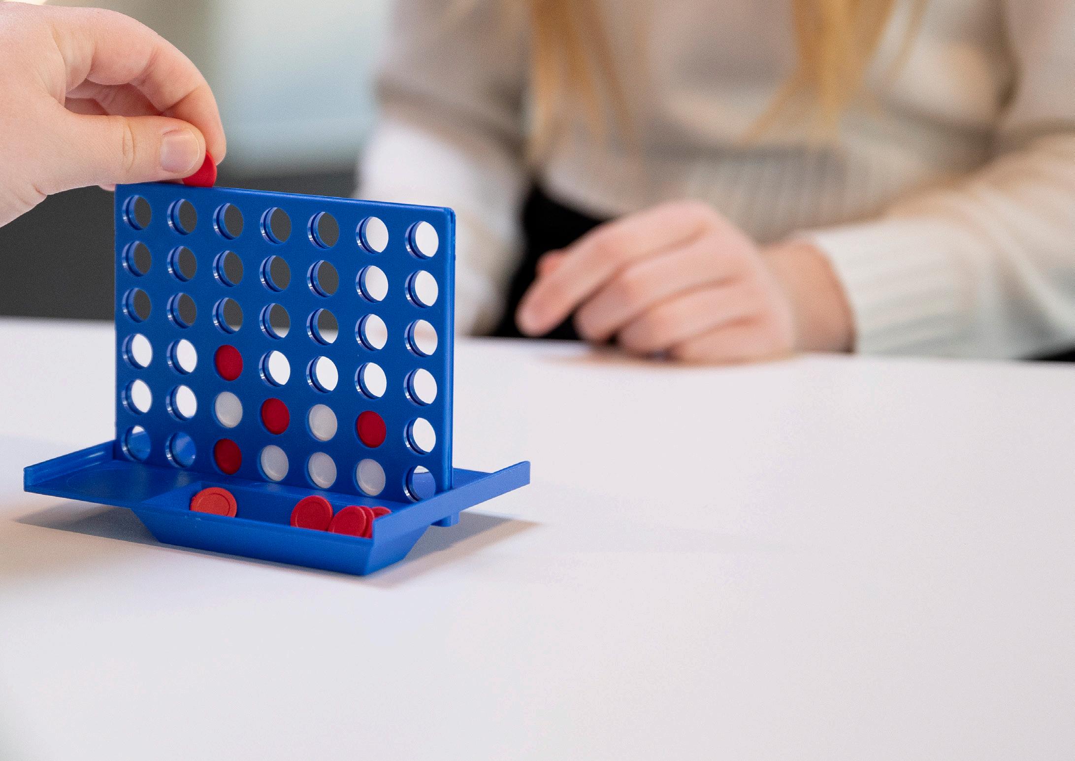Taktisches Spiel für 2 Kontrahenten. Mit abnehmbarer Spielwand und Ablageschalen für Spielchips.