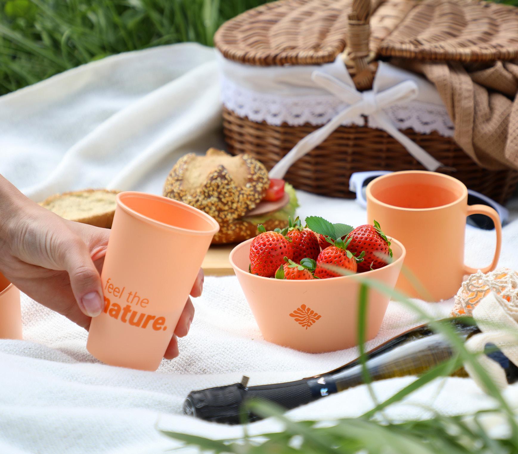Widerstandsfähiger und robuster Bio-Kunststoff. Frei von gesundheitsschädlichen Stoffen wie BPA, PFAS, Formaldehyd oder Phthalate. 100% recycelbar.