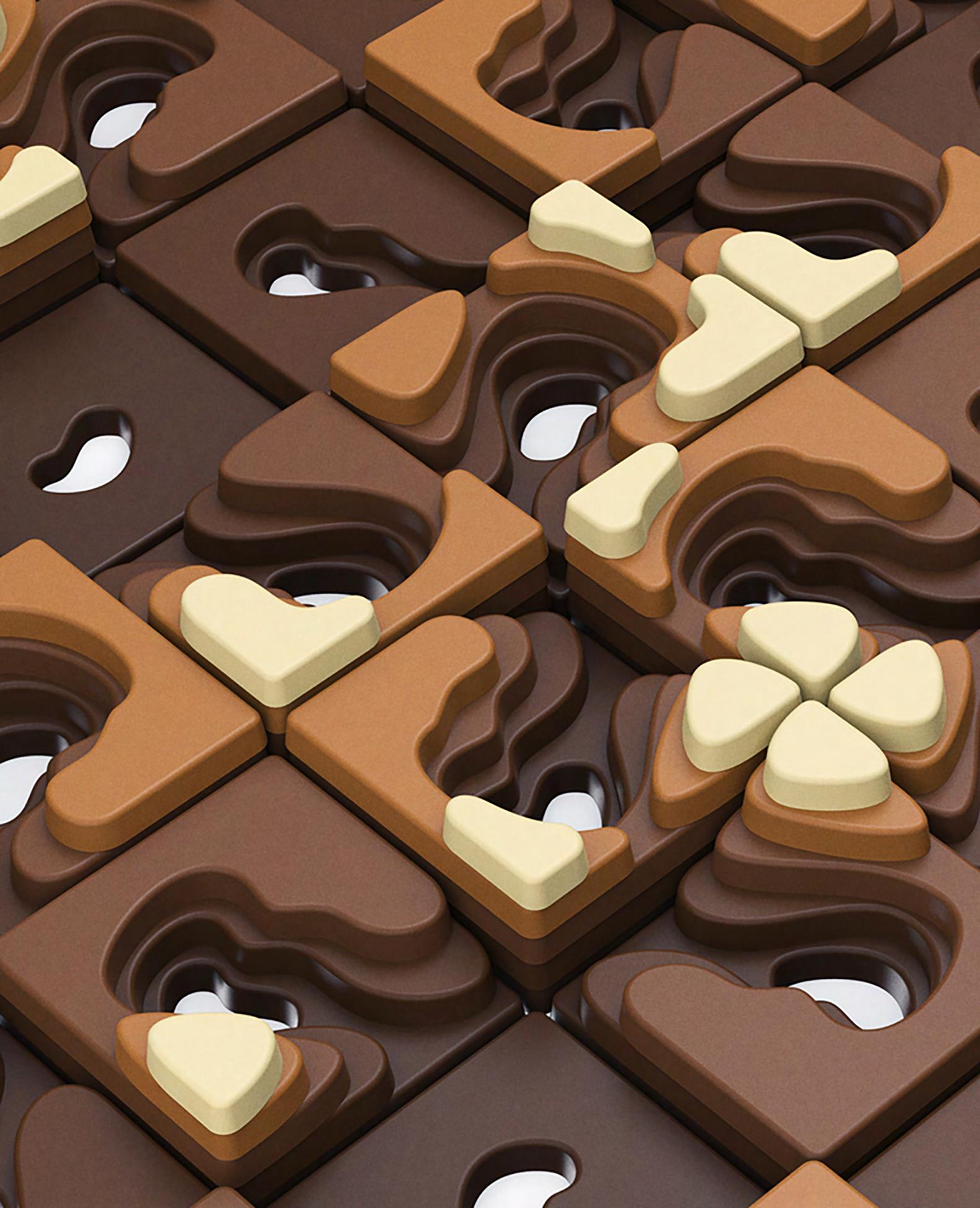 “The Bar’s chocolate flavors form a new kind of alternative to the traditional chocolate box, where different chocolate flavors are combined together instead of separated. Each layer of milk chocolate is made for different situations in life. In addition to plain milk chocolate flavor, the other layers are enhanced with nuts and cookie crumbs.”