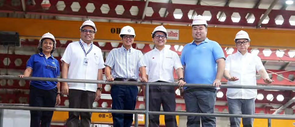 Secretary Jose Ramon Aliling, President Ferdinand Marcos Jr., Megawide chairman and CEO Edgar Saavedra, National Housing Authority general manager Joeben Tai and Social Housing Finance Corp. president and CEO Federico Laxa during the inspection of Megawide’s pre-cast plant in Rizal.