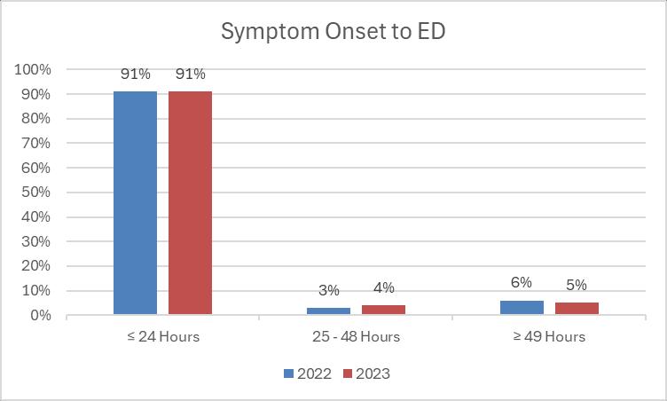 o Forty-eight percent of stroke admissions were for patients brought to the hospital by EMS from the field, 37 percent used private transportation, and 15 percent were transferred from one healthcare facility to another.