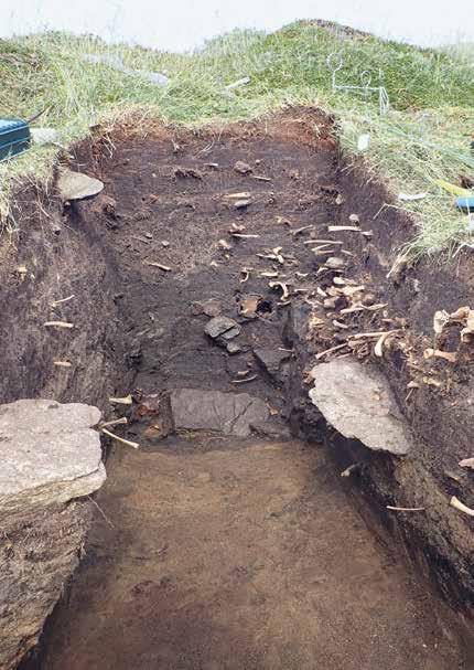 De arkæologiske lokaliteter rummer typisk både synlige og usynlige levn, som er lige vigtige for at forstå fortiden. Her ses en udgravning ved Arajutsisut, hvor arkæologerne har gravet ned gennem en køkkenmødding foran et tørvehus. Foto: Henning Matthiesen.