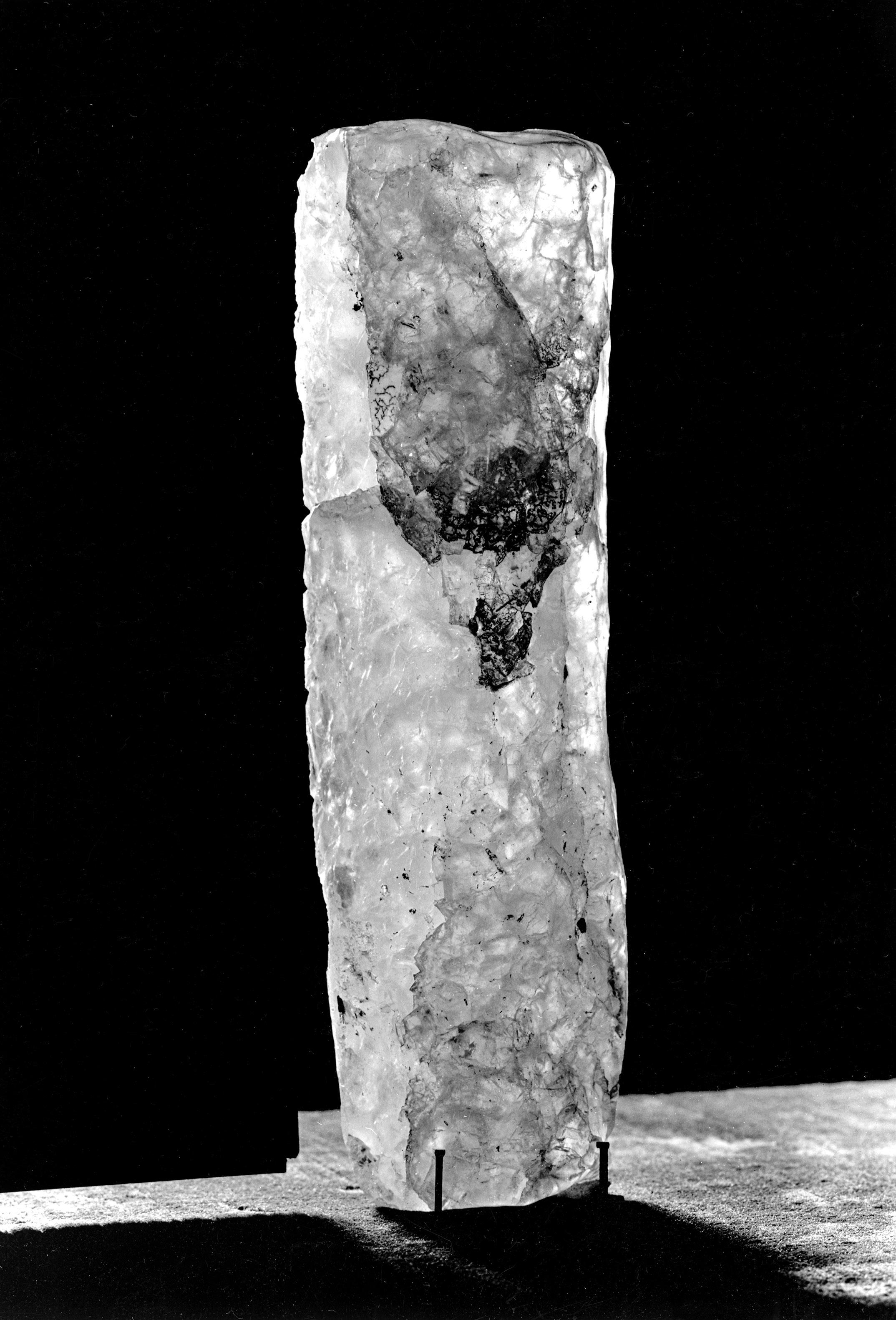 Fra spanden løfter amerikaneren Ravlin et aflangt, hvidt stykke stensalt op på bordet i det lille skur. Det måler 17 centimeter i længden og cirka fem centimeter i bredden. Saltstykket har en ru overflade og et tåget, gennemsigtigt indre. Amerikaneren lader det gå rundt mellem mændene i skuret. Højtideligt slikker de alle sammen på det og konstaterer, at det også smager salt.