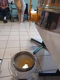 Installés dans une salle prévue à celà, les résidents volontaires et le personnel participent à l’extraction du miel.