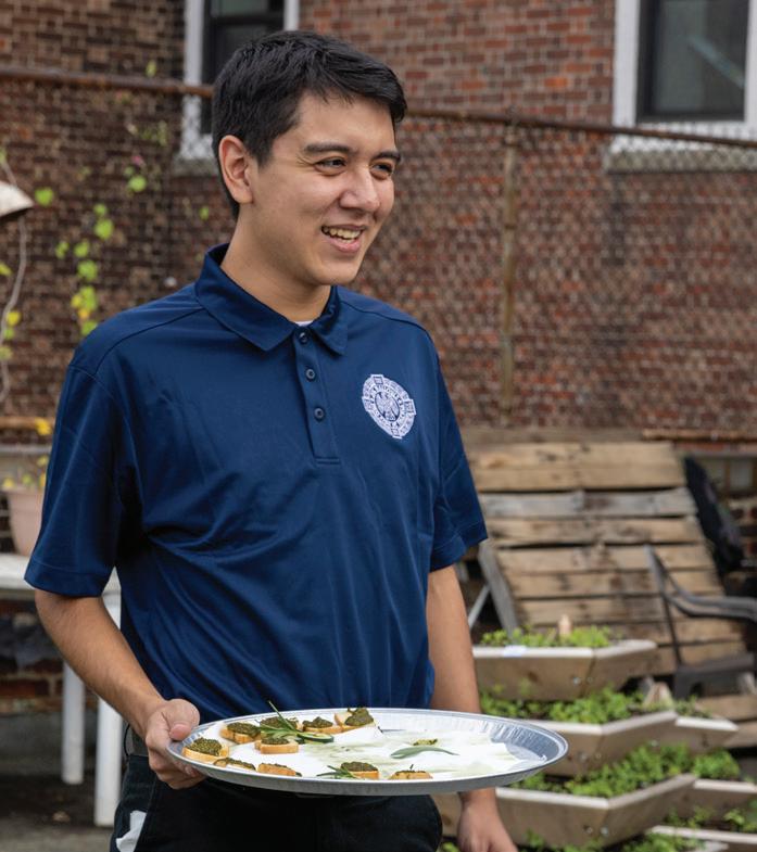 All Hallows’ Bronx Sky Farm was chosen by Fordham University as the perfect place to host their Bronx Community Town Hall on Climate Justice. The event served to conclude NYC Climate Week, a campaign of awareness and advocacy that hosted leaders from local gov ernment and advocacy groups, WCS (the Bronx Zoo), and ConEdison. The All Hallows students who made this a reality were lauded as role models in stewardship. They were also hailed by panelists and guests as great chefs, since they served hors d’oeuvres of pesto, roasted egg plant, zucchini, and relishes all grown in the very space they were sitting. This service was such a success that it was repeated for the National Honors Society Induction, Open House, and other events.