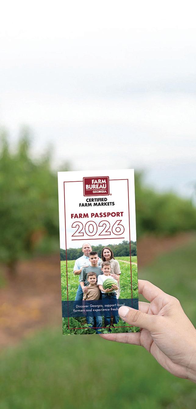 All advertising accepted subject to publisher’s approval. Advertisers must assume liability for content of their advertising. Publisher maintains right to cancel advertising for non-payment or reader complaint about advertiser service or products. Publisher does not accept per-order, political or alcoholic beverage ads, nor does publisher prescreen or guarantee advertiser service or products. Publisher assumes no liability for products or services advertised in the Georgia Farm Bureau Neighbors. For advertising rates and information, contact Wendy McFarland at 334-652-9080 or mcfarlandadvantage@ gmail.com. Georgia Farm Bureau Neighbors was established in 1996. Copyright 2026 by the Georgia Farm Bureau Federation. Printed by Panaprint, Macon, Georgia.