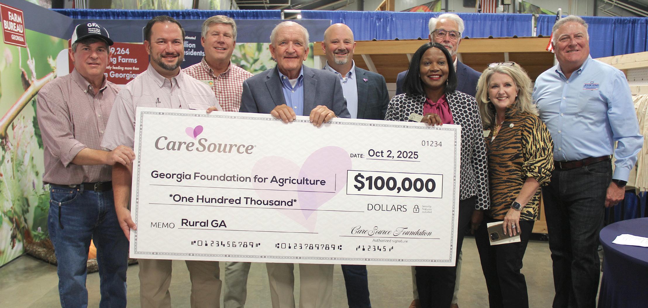 CareSource leaders Jason Anavitarte, second from left, & Jason Bearden, fifth from left, presented a $100,000 donation to the Georgia Foundation for Agriculture accepted by GFA Board Chairman Tom McCall, fourth from left. State legislators and officials who represent rural communities that will benefit fro m CareSource’s investment joined the presentation.
