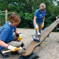 Die Vielfalt der Projekte ist einmalig: In Schulen, Kindertagesstätten und Jugendfördereinrichtungen werden zum Beispiel Außenanlagen oder Schulgärten aufgeräumt, repariert sowie neu angepflanzt. Rie senspiele und Sitzgelegenheiten werden gebaut, für Senior*innen entstehen Hoch beete zum unbeschwerten Gärtnern. Auch soziale Projekte freuen sich über Mitwir kende. Musiker*innen, Chöre und Tanzgruppen leisten hier einen wertvollen ehrenamtlichen Beitrag.