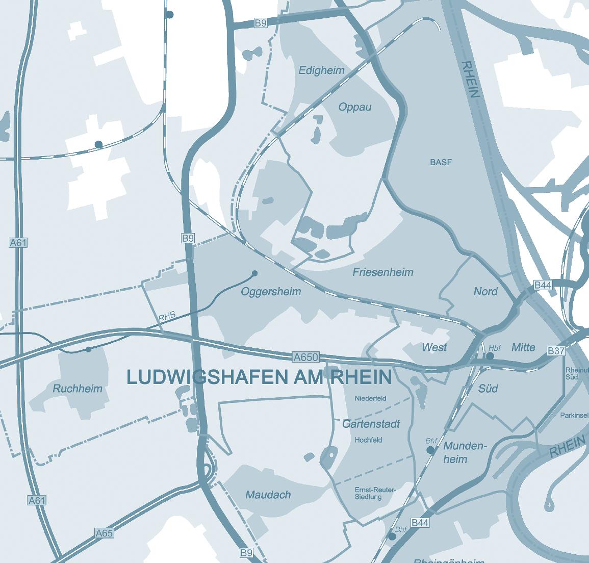 GAG Ludwigshafen am Rhein, Aktiengesellschaft für Wohnungs-, Gewerbe- und Städtebau, Mundenheimer Straße 182, 67061 Ludwigshafen (Stadt Ludwigshafen, Anteile 66 %; BASF Wohnen + Bauen GmbH, Anteile 30 %)