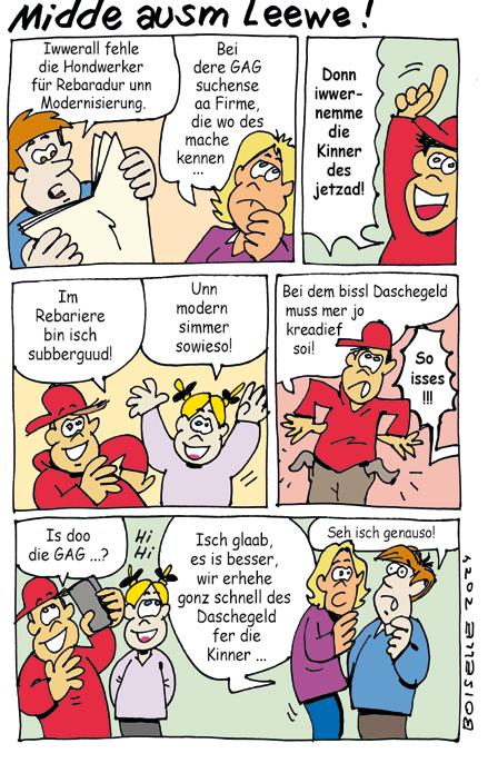 19 Cartoon von Steffen Boiselle „Midde ausm Leewe!“ Fachkräftemangel