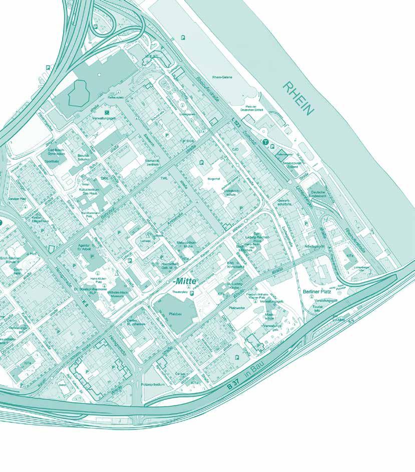 Auf der Karte der folgenden Doppelseite haben wir für Sie kühle Orte im Zentrum von Ludwigshafen markiert.