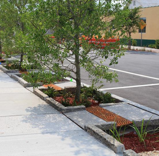 Several “Green Streets” are recommended for downtown. Green Streets are locations that combine low-impact stormwater drainage techniques with improved pedestrian streetscapes and that form the spine of the connected pedestrian and cycling environment in downtown, connecting the uphill parks to the neighborhoods and to Lake Minneola. The first of these streets is Minneola Avenue from Lake Avenue to the proposed West Lake Wetlands Park. The street would include stormwater planters, on-street parking, upgraded street tree planting, a 5’ sidewalk on the north side of the street and a 12’ multi-purpose path on the south side of the street.