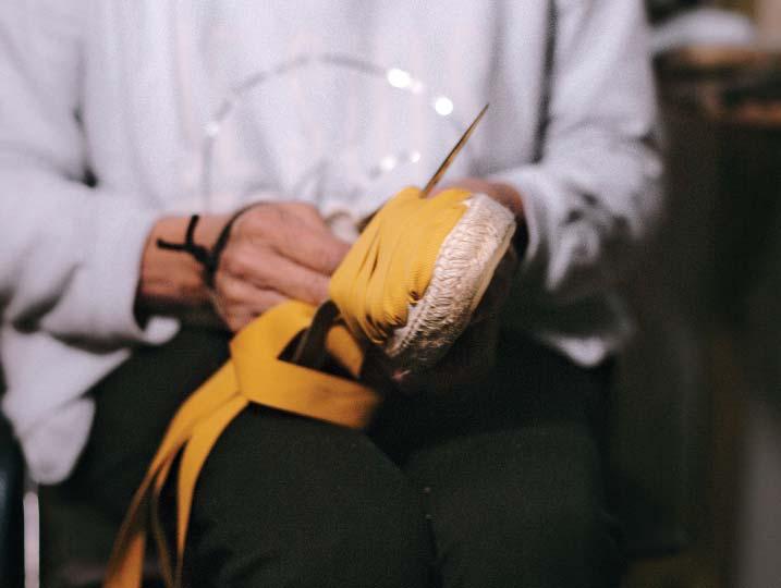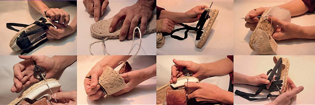 Trepitjant fort. Fan olor de cànem i espart. Els seus materials són nobles i ecològics. La indumentària tradicional valenciana té un tret identitari en el seu calcer, on es trena la fibra vegetal per a obtenir les espardenyes. Avui en dia el procés de fabricació d’aquest calcer continua sent totalment manual en la nostra comunitat, gràcies als artesans que mantenen viu l’ofici d’espardenyer.