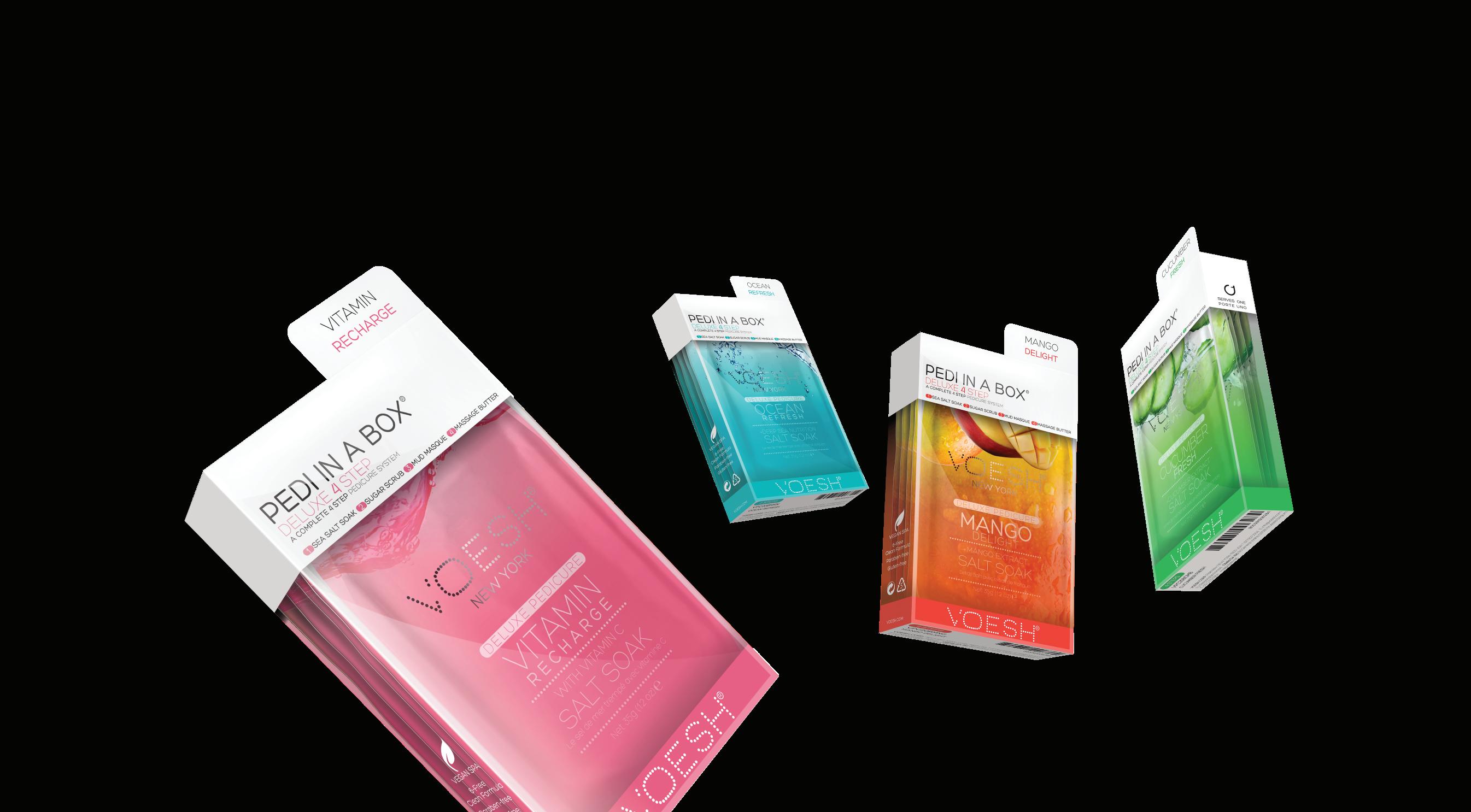 ONLY HIGH QUALITY, GOOD-FOR-YOU INGREDIENTS PEDI IN A BOX (4 STEP) PEDI IN A BOX (WATERLESS 3 STEP) PEDI IN A BOX (5 STEP) vitamin recharge . ocean refresh . lavender relieve . olive sensation . green tea . cucumber fresh . jasmine sooth . charcoal power detox . eucalyptus energy boost . hemp relax lemon . green tea raspberry sorbet Gel-Ohh! A unique jelly spa pedicure. Upgrade your regular foot soak to a satisfying Jelly Pedi! Gel-Ohh! delivers heat and aroma therapy to soothe and relieve tired and sore feet. €1.75 EACH €2.99 EACH €2.74 EACH €4.18EACH 3 for €5 4 for €10 4 for €10 4 for €15 PEDI IN A BOX 4 STEP PEDI IN A BOX 3 STEP PEDI IN A BOX 5 STEP