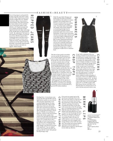 PRODUCTS FEATURED 1. TOPSHOP Ripped Jeans RRP £45 2. TOPSHOP Short Dungarees RRP £38 3. RIVER ISLAND Black Like That Crop Top RRP £12 4. MAC Lipstick in Brave Red RRP £13