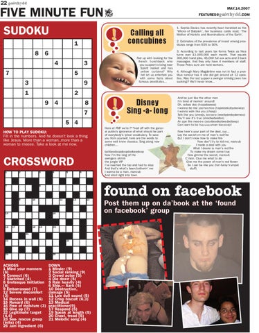 5 4 HOW TO PLAY SUDOKU: Fill in the numbers. And he doesn’t look a thing like Jesus. More than a woman..more than a woman to meeee. Take a look at me now.
