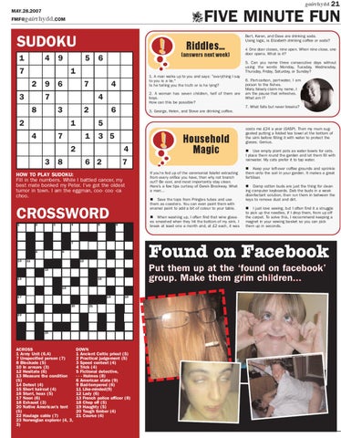 HOW TO PLAY SUDOKU: Fill in the numbers. While I battled cancer, my best mate bonked my Peter. I’ve got the oldest tumor in town. I am the eggman, coo- coo -ca choo.