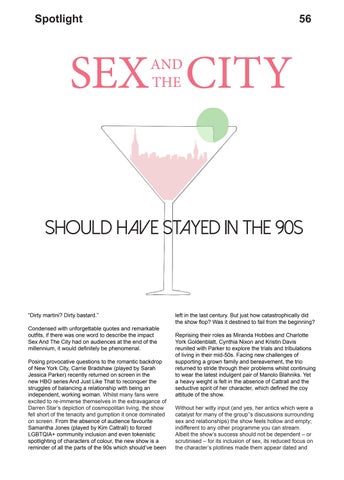 “Dirty martini? Dirty bastard.” Condensed with unforgettable quotes and remarkable outfits, if there was one word to describe the impact Sex And The City had on audiences at the end of the millennium, it would definitely be phenomenal. Posing provocative questions to the romantic backdrop of New York City, Carrie Bradshaw (played by Sarah Jessica Parker) recently returned on screen in the new HBO series And Just Like That to reconquer the struggles of balancing a relationship with being an independent, working woman. Whilst many fans were excited to re-immerse themselves in the extravagance of Darren Star’s depiction of cosmopolitan living, the show fell short of the tenacity and gumption it once dominated on screen. From the absence of audience favourite Samantha Jones (played by Kim Cattrall) to forced LGBTQIA+ community inclusion and even tokenistic spotlighting of characters of colour, the new show is a reminder of all the parts of the 90s which should’ve been