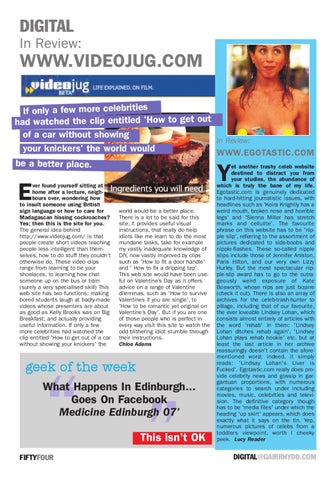 WWW.VIDEOJUG.COM If only a few more celebrities had watched the clip entitled 'How to get out of a car without showing In Review: your knickers' the world would WWW.EGOTASTIC.COM be a better place. et another trashy celeb website
