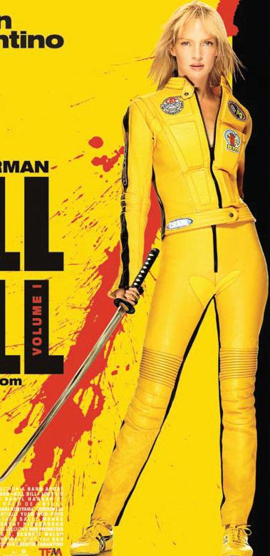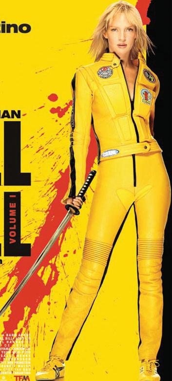 Tarantino continued this sense of visual adventure in Pulp Fiction Thurman’s sleek black bob contrasted with her simple white shirt and gallic 3⁄4 length black trousers; the eclectic mix of Travolta and Jackson in a heady post-irony free contrast of black and white splattered roughly with slashes of crimson blood were also instantly iconic. Tarantino was able to mix post-punk visual glare with new wave understatement and chic dialogue. For Tarantino,the machine gun dialogue and the visual impact of every scene are one and the same. Tarantino finally completed his daring mix of fashion,art and cinema in his oriental kung-fu flash dance, Kill Bill. Preempting the hollow Harajuku-chic of Gwen Stefani, Tarantino fused Japanese schoolgirl killer style with oriental grace,brutal 5,6,7,8 punk nihilism,and yellow-leather samurai swing. At last music,art,and cinema came together in one hectic stylised fashion statement of serious intent.