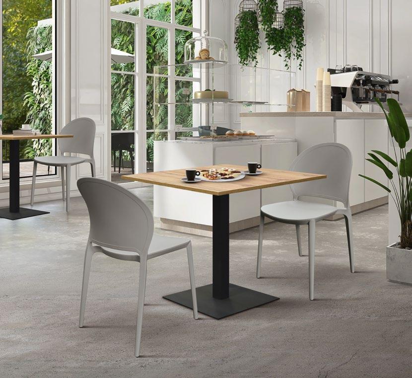 sedia struttura in metallo e seduta in polipropilene colore grigio. chair with metal structure and seat in gray color polypropylene.